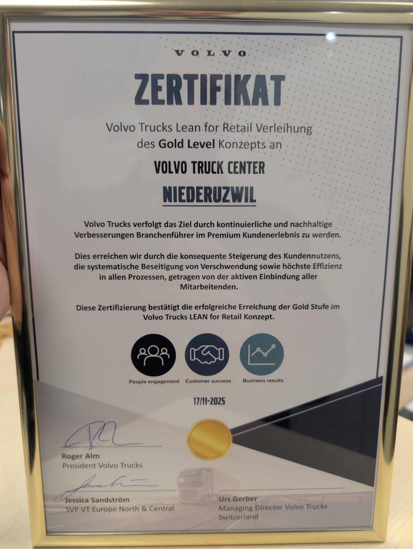 Parallèlement au site de Niederuzwil, les Truck Center d'Aclens et de Münchenbuchsee ont également obtenu cette année le niveau Silver du programme « Lean for Retai »l.